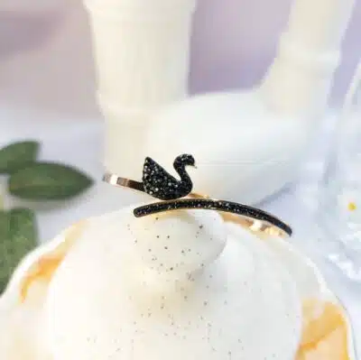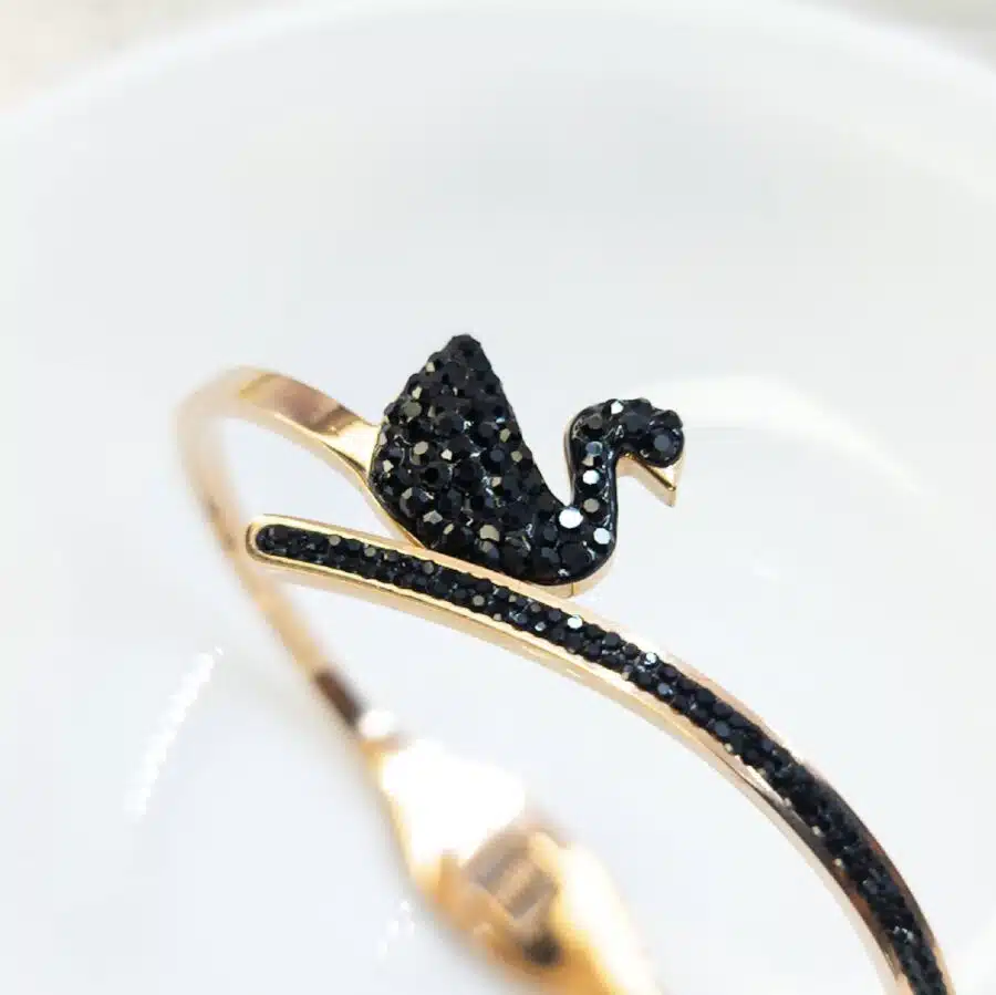 The BLACK SWAN BRACELET is a versatile accessory that can be paired with a variety of outfits and styles, making it a great addition to any jewelry collection.